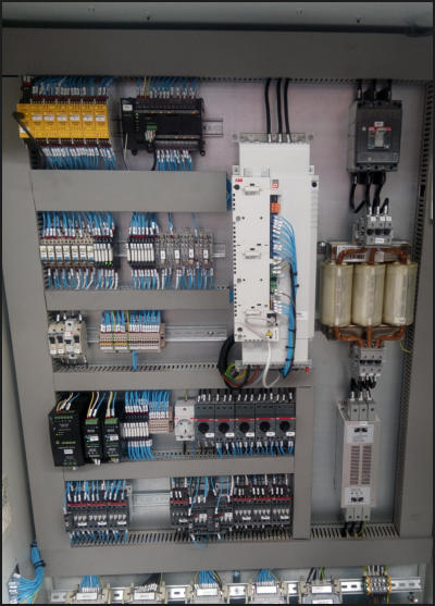 Realizamosadecuacionesdeprensasbienbasicasal RD1215obienmáscompletasconcambiocompleto decuadroelectricoysustituciónporcuadronuevo conPLCdeseguridad(Pilz,Wieland…)asicomo colocacióndevariadoresdevelocidad,barreras fotoeléctricastantobasicascomoprogramableso de tactos …EnlasmáquinasenqueseinstalaPLCdeseguridad secolocatambienunapantallatáctildefacillectura quesimplificaalmaximoelmanejodelamaquina facilitandoalmáximosuusoporpersonalno especializado.Enlafoto1ejemplodecuadroelectricoparaprensa dedoblemontanteconcambiodecarrera automaticoyalmacendetroqueles.IncluyePLCPilz yvariadorvectorialABB.Lafoto2correspondeala pantalla de mando de una prensa sencilla de 63Tn.